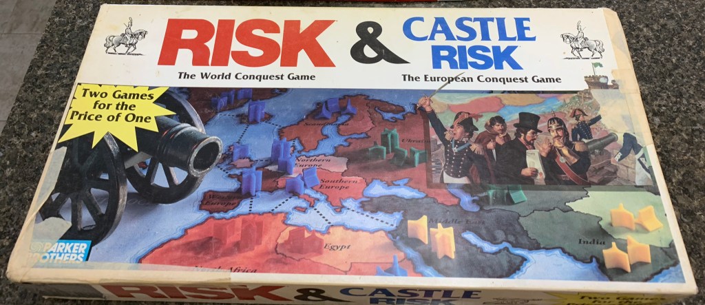 I bought these for $1.25 each, quite a deal! The RISK game appears to be complete, but the Stratego is missing two pieces. Not a big deal, I’ll just buy another set and then I can have interesting games by switching out pieces, new rules!