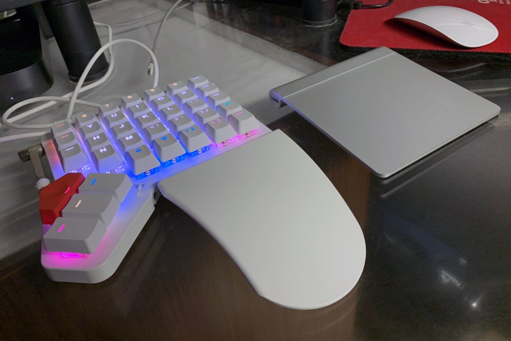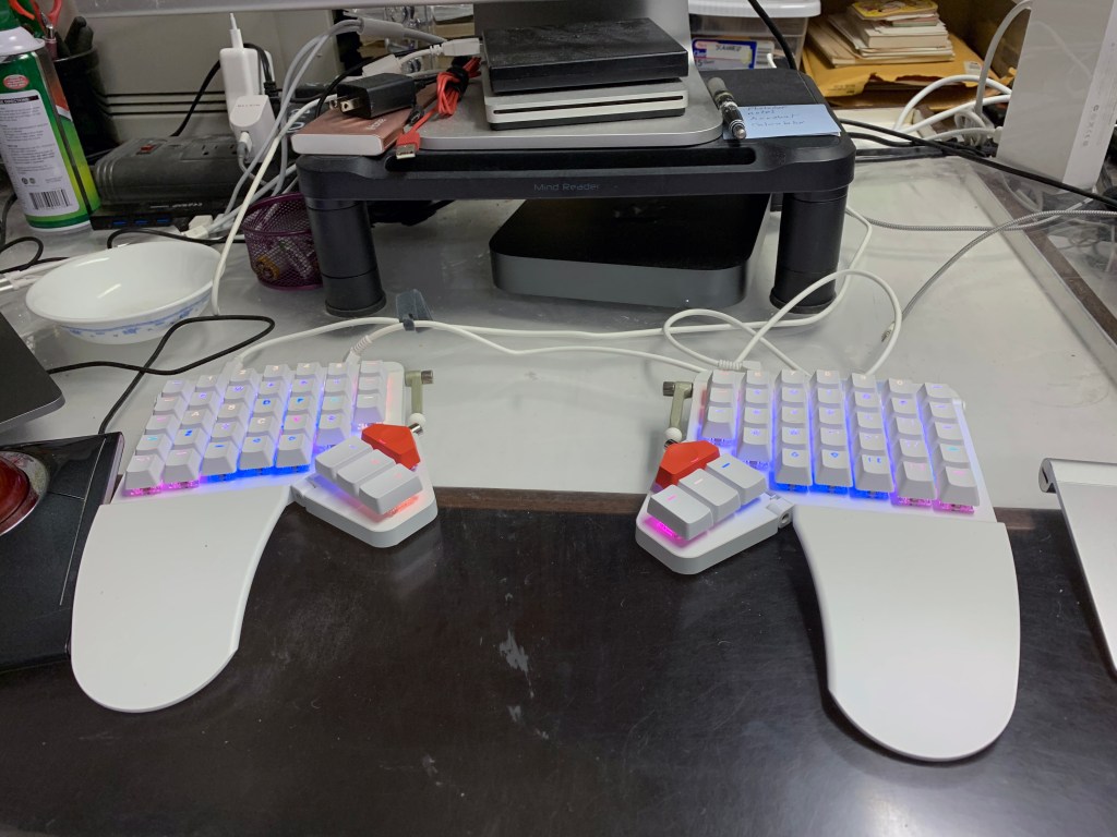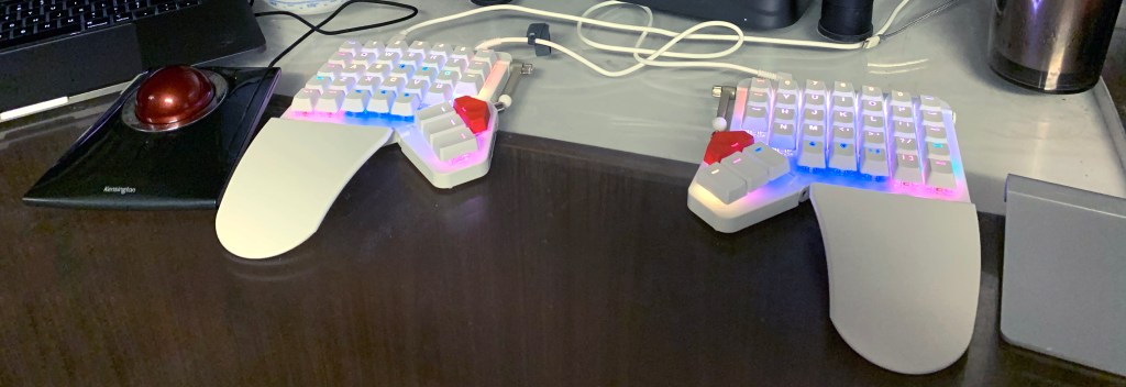 As of a week ago, I am now using an expensive, but excellent two-piece, fully programmable and adjustable ortholinear LED keyboard. And what an adventure it is!