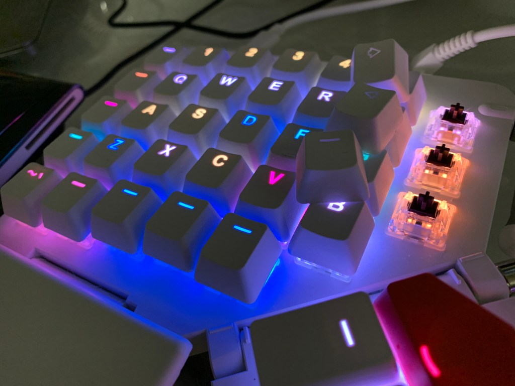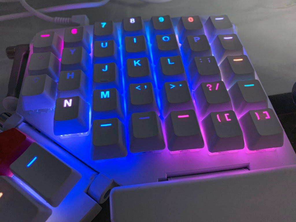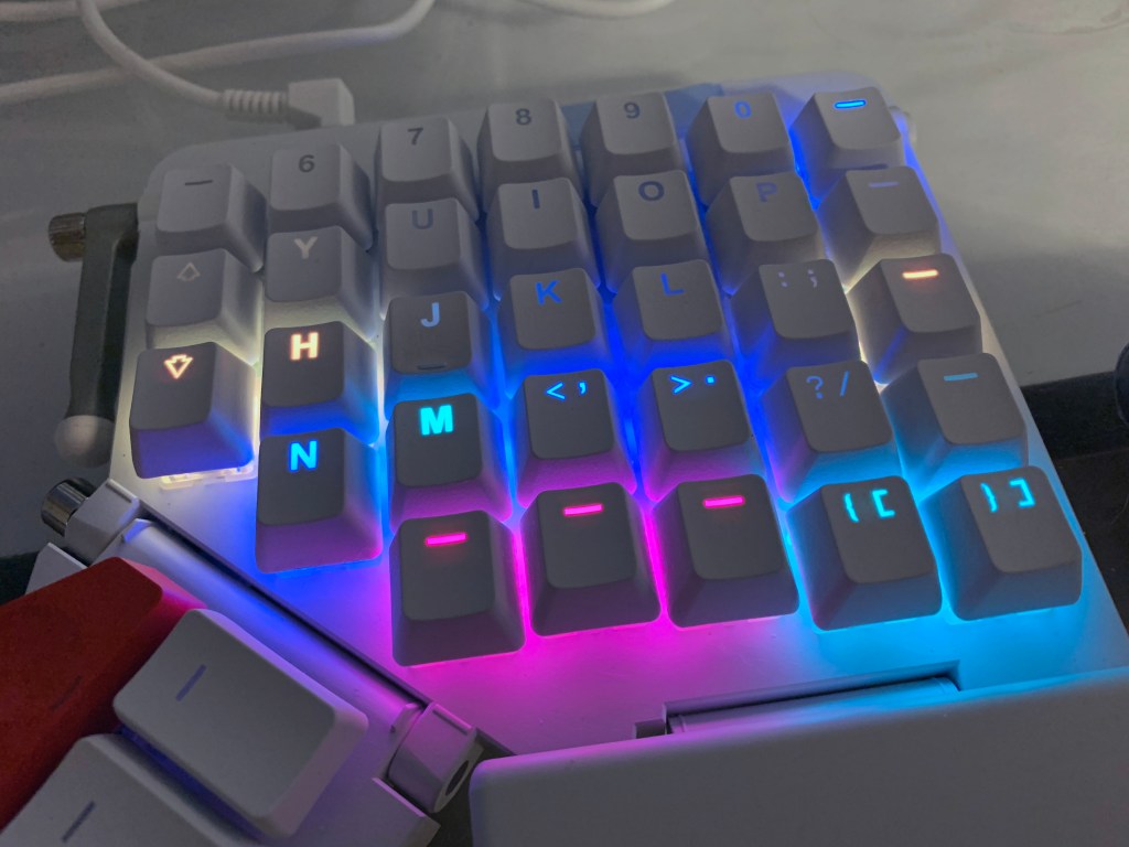 After one week, I’m still moving key assignments around, experimenting, learning. I actually pulled a few physical keys and re-arranged them. Assigning the individual key LEDs is incredibly helpful in remembering where certain keys are, in addition to the on-screen keyboard layout which responds to every key-press. I’ve got five different layers, and am trying to keep it as simple as possible, but the key ecosystem keeps getting better and better. Lots of learning.