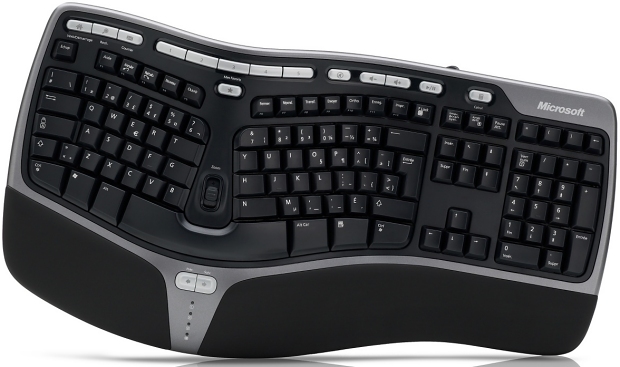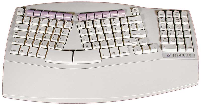 But this turned out to be a good thing. I discovered the Microsoft Ergonomic Natural 4000, a better keyboard. The keys were good, more of a standard, membrane keyboard instead of switches, but still good. Not ortholinear like the Datadesk, but it had a better hand-wrest, specialized and programmable audio keys, and eight programmable application keys which were incredibly helpful. A zoom key and two directionals for web surfing were added extras.