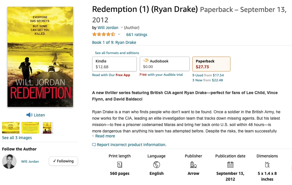 I would get into more series, for instance, for a while, I did collect the Jack Reacher books, but I ended up letting those go because the Flynn/Thor books were so re-readable, and I still have the Kyle Mills books to get to. I have a serious lack of shelf space, so I couldn’t branch out into another series, although in the future at some point, I will. Beyond that, there are the Will Jordan books, which are more obscure, but I follow him (Critical Drinker) on YouTube and based on those videos, I feel confident his books are going to be good. Unfortunately, they are paperback only.