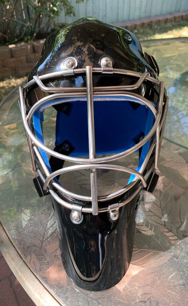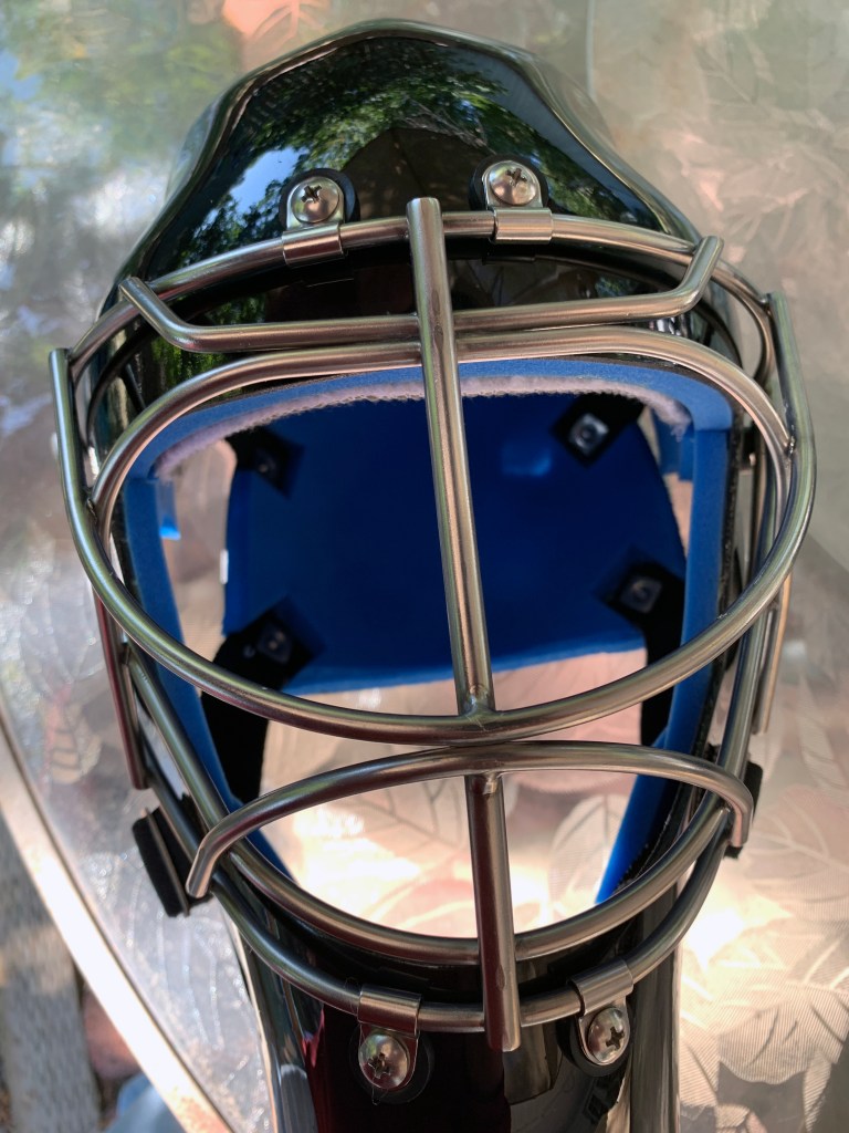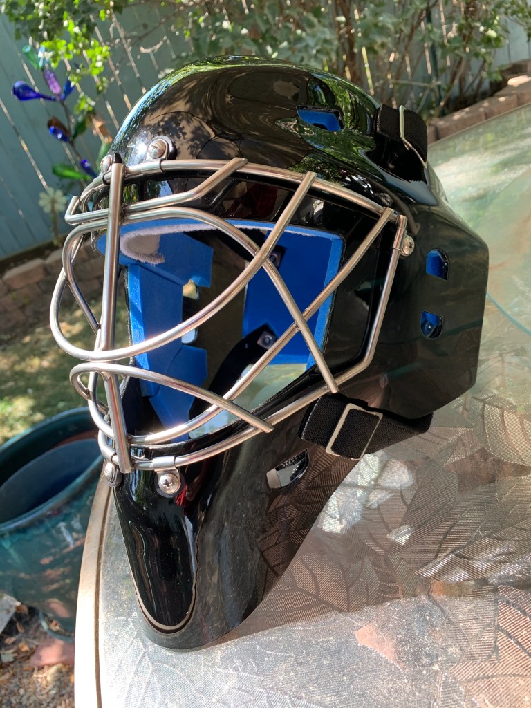 Finally got my new Defender mask to replace my old Sportmask. The Sportmask was second-hand, didn’t cost much and has lasted a very long time. However this new one fits better and doesn’t have all of the battle damage. It’s been a long time coming, but the weakest aspect of my goaltending gear has finally been dealt with! The Defender is a custom mask and is definitely not a thrifty bargain like the Sportmask was as it cost as much as my leg pads did, but it is a long-term commitment and I’ll definitely be getting my money’s worth out of it!
