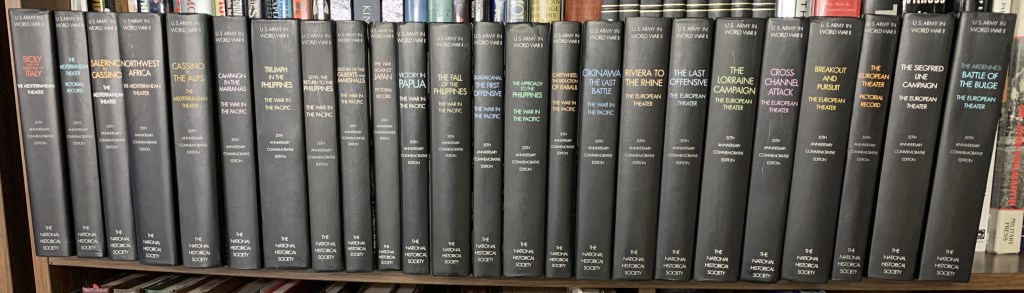 I gave up on this set of books, as it was too expensive. They aren’t available in actual, complete sets very often. A complete set consists of four extra books on the Mediterranean theatre, that are even more difficult to find separately, and even less cost-effective to do so. However, someone put this set up for far less, and I was able to get it!