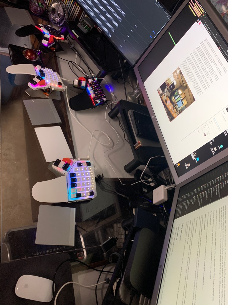 Using normal rechargeables isn’t efficient. I have enough logistics to deal with, with all of my peripherals and my super-special keyboard, that when I get to work, I need things to be as simple as possible because it takes time to set everything up, get the bluetooth to recognize everything, etc. Battery issues do not help.