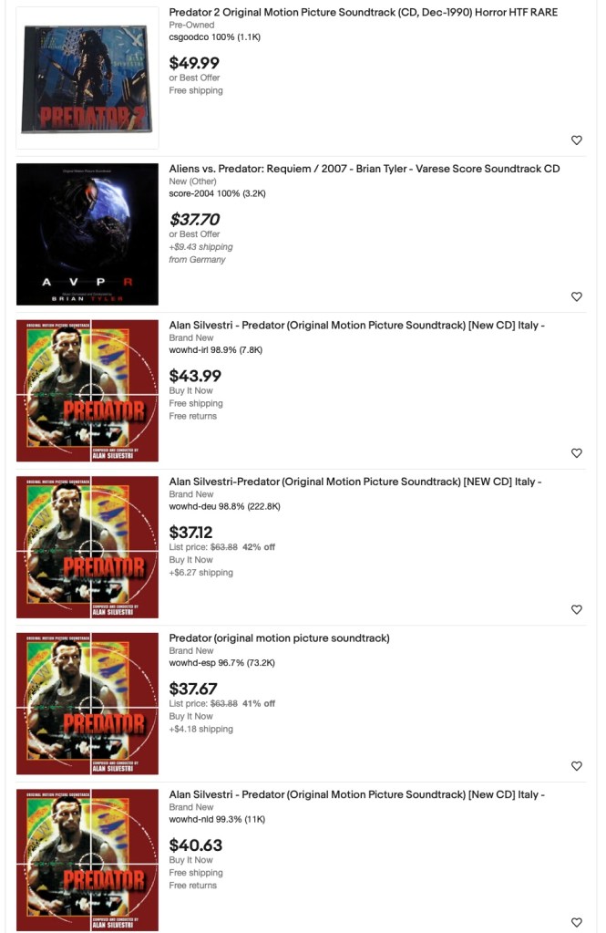 I did find the Predator 2 soundtrack earlier this year at a thrift store; that is a rare find. Most of the soundtracks that get to thrift stores are always the same, and nothing by way of classics like these.