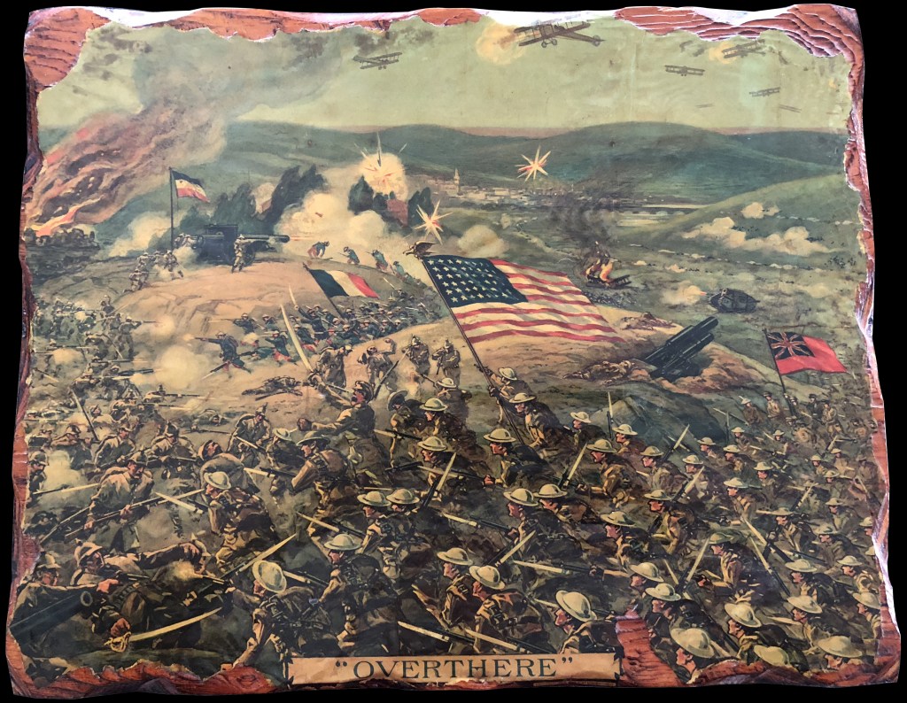 It’s basically a drawing (original?) that has been sealed onto wood with some sort of clear coating. This kind of artwork is something that was common at the time, especially on postcards, and I think it is a pretty good piece of artwork. Imagine a time before television and radio, where the only knowledge of anything came through heresy, books, and newspapers, what this kind of image impressed on a person.
