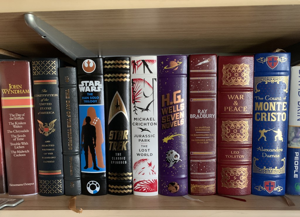 The “War and Peace” and “Day of the Triffids” are Easton Press volumes, they are of even better quality, at a much higher price. I paid about forty bucks for Triffids used, as it is my favorite fiction book, and ten bucks for “War and Peace” at the thrift store. Someone must have passed away as there was a lot of these Easton books there. I refrained from buying any more than this as I haven’t much room, so I need to stick to things I actually plan to read. Although I wouldn’t mind having a big bookshelf of these high-end books.