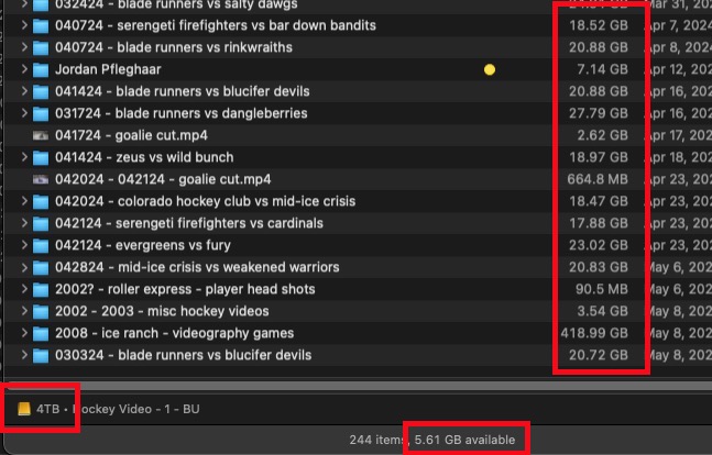 Nerd Alert: After copying for several days, all of my GoPro hockey videos just BARELY fit on a 4TB hard drive! One more game video, and all of them wouldn’t have fit. Now, I’m ready for a new season of hockey with my computer’s hard drive empty of hockey videos, ready to go!