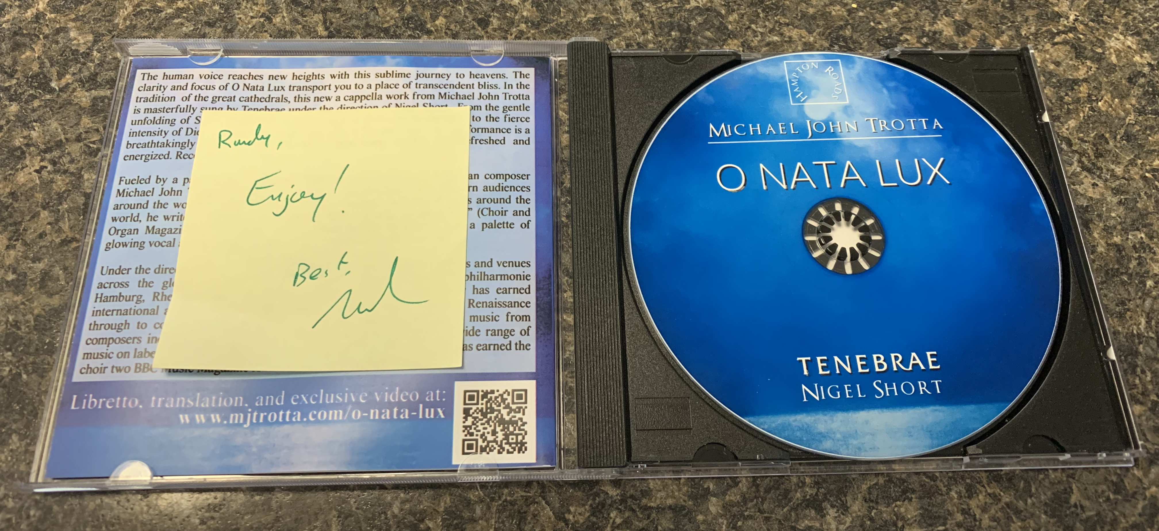 I recently received a cd from composer Michael John Trotta, and the music it contains is just wonderful. I truly wish people would break from corporate music and instead turn to works that are beautiful, like this.