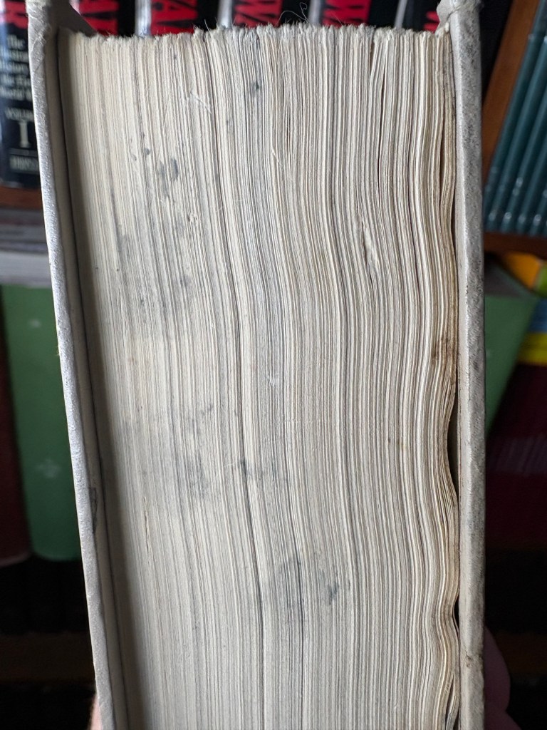 There were other books at the thrift where I bought this that were also beat-up quite a bit, complete with spider-webs and caked-on dust on top of the books (that happens a lot, where someone passes away and the family had to grab all of the ‘worthless’ books and haul them to the thrift.)