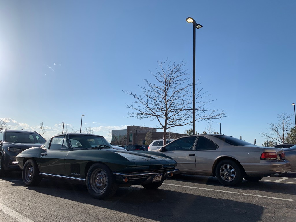 This neat Corvette got to park next to me at the Ice Ranch… (check out the license plate!)