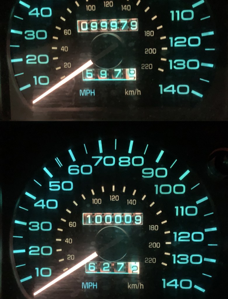 My 1993 Lincoln Mark VIII just rolled over to 100,000 last night, but I couldn’t get a picture of it as I was on the turn from C-470 onto I-70 at the time. Not going to get into a crash for that! I feel like a party is in order for something like this? These are basically upgraded, luxury Thunderbird/Cougars from the 1990s, and this one still runs like a champ.
