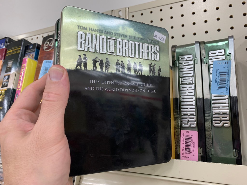 Every time I re-watch my DVD version of Band of Brothers, I look up how much it is on Amazon… too much. Worth it, but if I buy it, I’ll find a the Blu-ray copy at the thrift for next-to-nothing. Well, I finally saw it today, and took it home! (After paying for it, of course!)