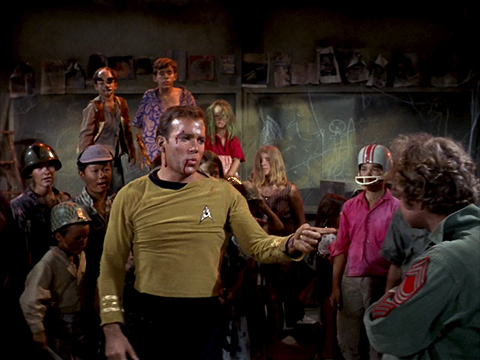 The Omega Glory • Kirk Spock, and McCoy are infected on a planet with warring tribes ruled by a rogue Starfleet captain.