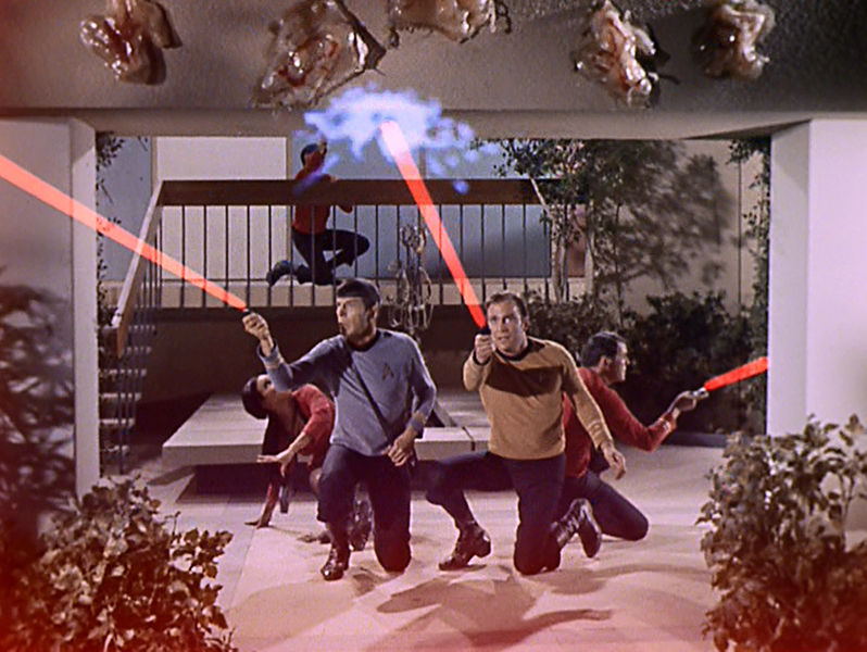 If one watched this show back in the day, it was every week, with the summer off. So there are a lot of things one wouldn’t really notice, that one does notice on a binge-watch like this. Things like: Blasters and communicators don’t work more than they do work, always because of some all-powerful alien force. I didn’t tally this, but I wouldn’t be surprised if it was actually every other episode that this happens. Or, the Enterprise is being controlled, threatened, or damaged by all-powerful alien threats. Or, the transporters. Things just don’t work that often. This is in a way, conflict, something that Gene Roddenberry didn’t want the crew of The Next Generation to have. They were always supposed to work together without any conflict, which again and again, people involved in writing for TheNext Generation always complained about because without conflict, it is horribly difficult to write anything of interest in a drama. By the time Deep Space Nine game about, they did away with that non-workable Roddenberry law.