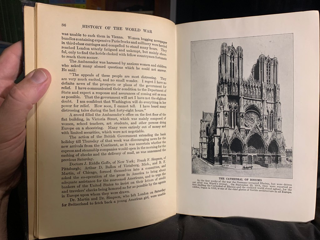 World War I was known as “The Great War”, or as in the case of this book, which was published in the same year as the war ended, 1918, “The World War”. There was no “World War II” yet, so nobody knew to call it “World War I”.