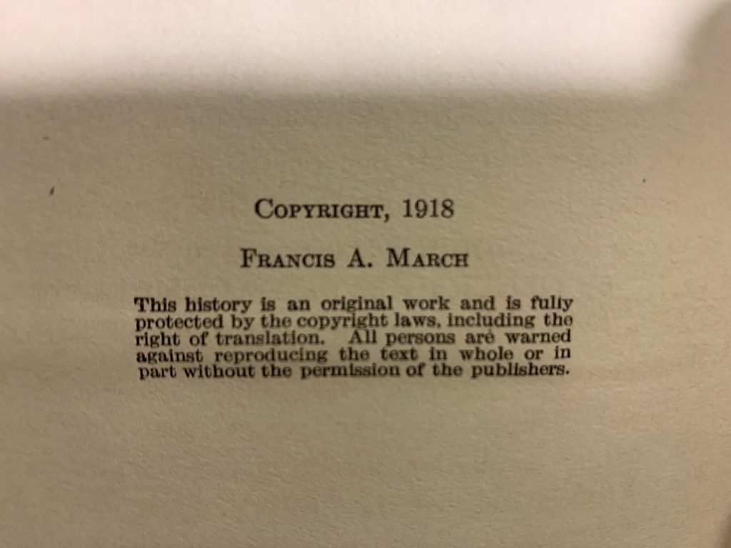 It is really neat to read books like this, written so soon after the war, and totally ignorant of the even worse war to come in just twenty years time from the publication of this one. There is a great amount of bias by the author, who was eventually a Brigadier General in the U.S. Army, but a lot of that comes from the perspective of the author and is very interesting to read. Francis A. March was active in that second war, so he saw a lot of violent history in his time.