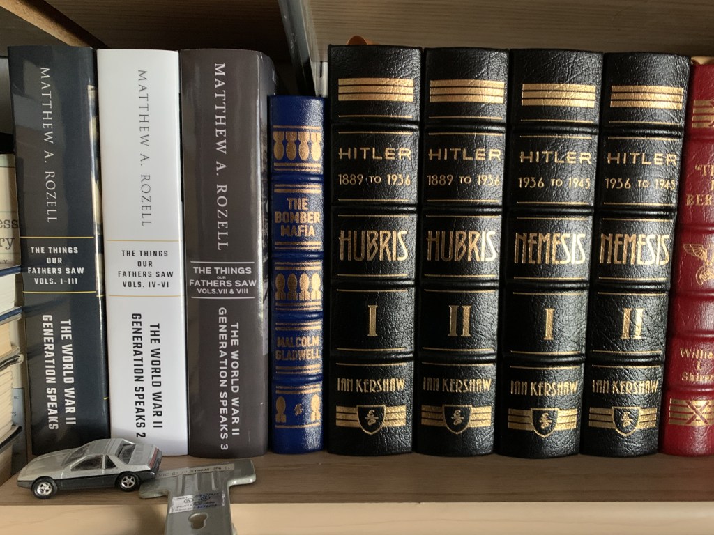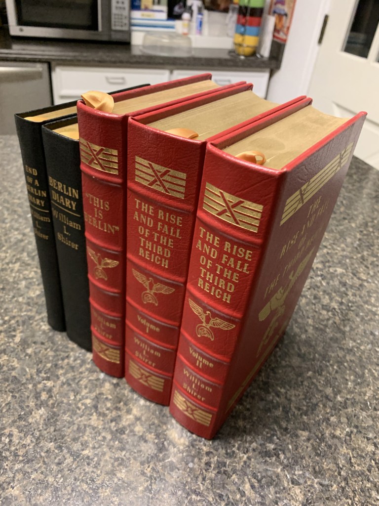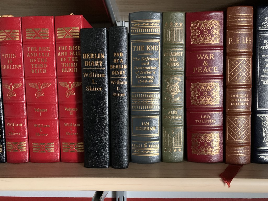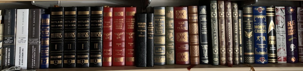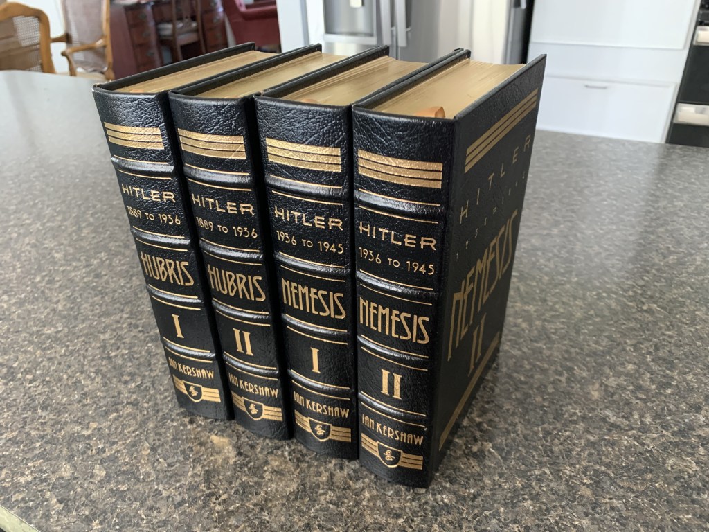 One of the best sets in my library, Ian Kershaws’ biography of Adolf Hitler, reprint by Easton Press. I also have the regular hardbacks and the abridgement all-in-one volume.