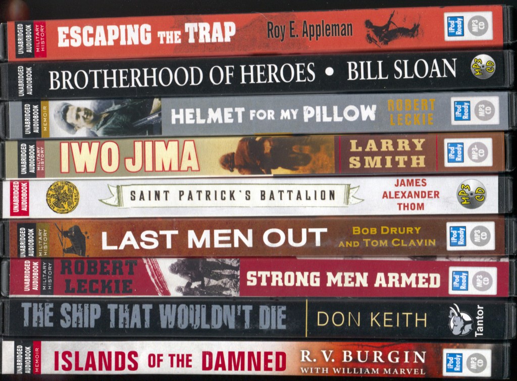 I never see things like this at the thrifts: military books on cd! This was a great deal! I have read Helmet for My Pillow, which is one of the two books that the miniseries The Pacific is based on.